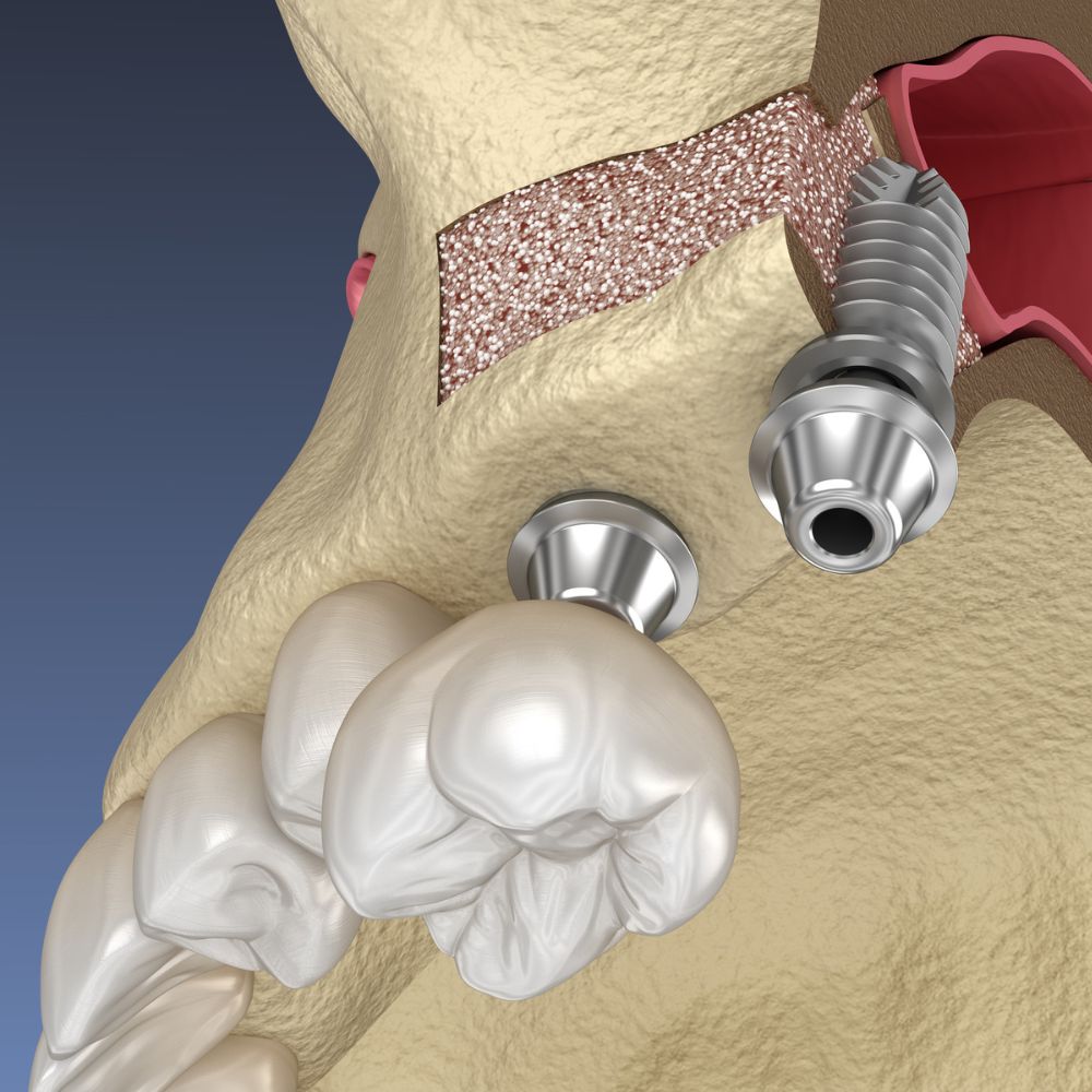 Seul une radiographie 3D (cône beam) permet avec précision de déterminer le volume osseux. Dans l’éventualité d’une insuffisance il existe des solutions alternatives comme combler le volume osseux manquant avec un substitut (sinus lift) ou de réaliser des greffes d’apposition.